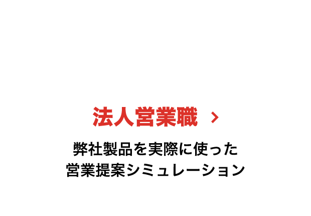 当日は以下のスケジュールを予定しています! 1). 業界研究 2). 会社概要紹介 3). 営業職の業務内容説明 4). 現場で活躍する先輩社員とのQ&A座談会 「仕事のやりがい」や「成功体験/失敗体験」など色々聞いてみて下さい!! 5). 営業シミュレーション体験(弊社営業の一連の流れをシミュレーションできます!) →シミュレーション後には先輩社員からフィードバックあり! 6). 採用担当からの「就職活動ワンポイントアドバイス」 →就職活動で意識した方が良いことなど、採用担当目線でお伝えします! |
